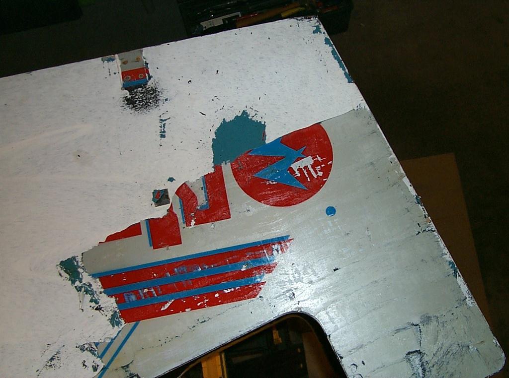 Well, this is by far the best technique I've seen to date. This technique works because they used Latex paint to paint over the top of the art (Typical House Paint). Had they used an Oil Based paint, the chances of this working drop significantly. This works with games that had art PAINTED on the sides. Games that had stickers probably won't work as well since the heat would probably melt the sitckers. I don't have any games to test this on, so I don't know for sure. If someone tries it, let me know how it turned out. We'll do the other side of the game and probably put up a picture of an entire side done with this technique and any other tips we might discover. The art is far form Perfect, but you might be able to clean it up enough to the point where you can put it in the game room. There is still a lot of work to do after the fact since there will be a residue left from the paint and there will be several spots that you couldn't peel up at first. Enjoy!