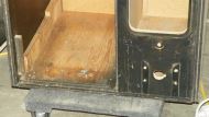 The shelf on the inside of the control panel area had a soda stain on it. Since the cabinet was made from MDF, it wasn't going to wash out. The best solution for this was to sand it down with 60 grit sand paper. As you can see in the second picture, this worked very well and went pretty quick.